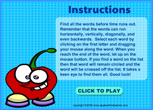 Play this interactive word search game against the clock. You may choose to play interactively online or print the word search out to play on paper.