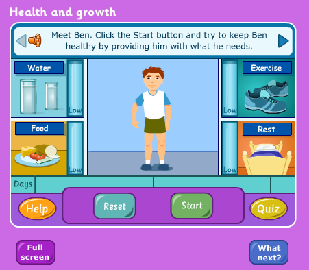Meet Ben. Click the Start button and try to keep Ben healthy by providing him with what he needs.
