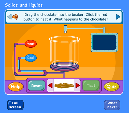 Drag the chocolate into the beaker. Click the red button to heat it. What happens to the chocolate?